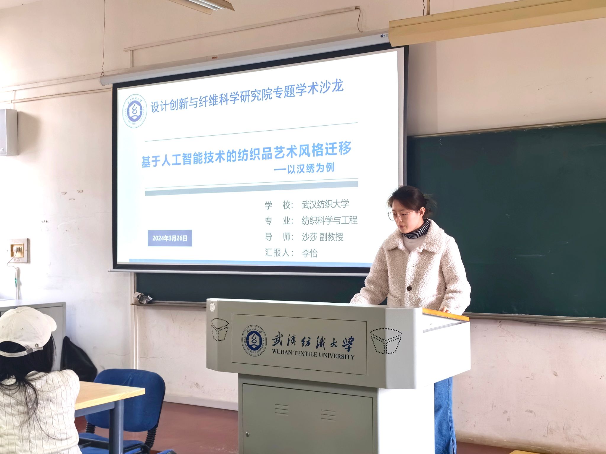 3月26日下午,mrds14fun每日大赛官网在综合楼601教室举办了2024年第一期研究生学术论坛。本次论坛由2021级研究生李怡以《基于人工智能技术的纺织品艺术风格迁移——以汉绣为例》为题进行学术成果汇报。