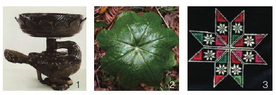 黄梅挑花八瓣莲纹形象构成的基础是莲荷与吉祥观念的关联,是黄梅人民对生活方式和民俗文化相关联的现实力量的整合。八瓣莲纹作为挑花美学情趣与功利意义的现实性存在,具体地呈现了黄梅人将客观事物转化为主体意识的方式。春秋时期荷花已出现在人们的视野之中,莲花纹伴随着阴阳五行观念而产生,并成为中国最早的成系列发展的植物纹样之一。莲纹作为一种观念是主体意识的现实力量,它渗入生活,形成稳定的民俗观念。由于黄梅域内多湖泊沼泽、蛇蚊毒虫,而八角莲具有清热解毒、抗毒蛇咬伤之功效,治一切毒蛇伤。出于对自然界客观事物的认识和驱邪趋吉的理想信念,故而八角莲在黄梅挑花中具有“前关联”的“吉祥”符号意义。