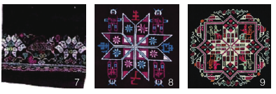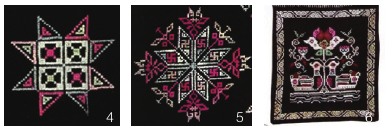 受生产生活资料和民俗观念的影响,黄梅女性使用相近的材料、工艺,通过色彩搭配与主题图案组合,形成“既趋同持恒,又能动地选择和组合‘艺术中的符号’”,使黄梅挑花构成了既有集体契约性质的社会化意义系统,也形成了具有黄梅女性特质的个性化含义系统,不同的莲纹主题更指涉了黄梅人个性化的思想情感与内心世界。